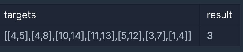 public int solution(int[][] targets) {