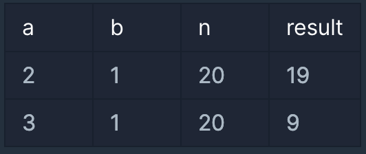 public int solution(int a, int b, int n) {
