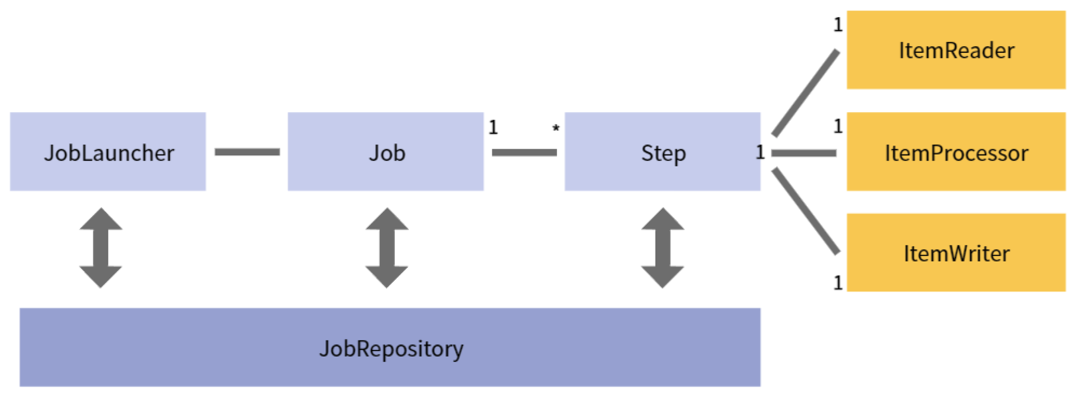 Spring Batch는 Job과 Step의 조합으로 구성된다.