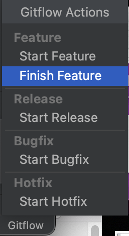6) Gitflow -> Finish Feature로 Feature를 종료한다.