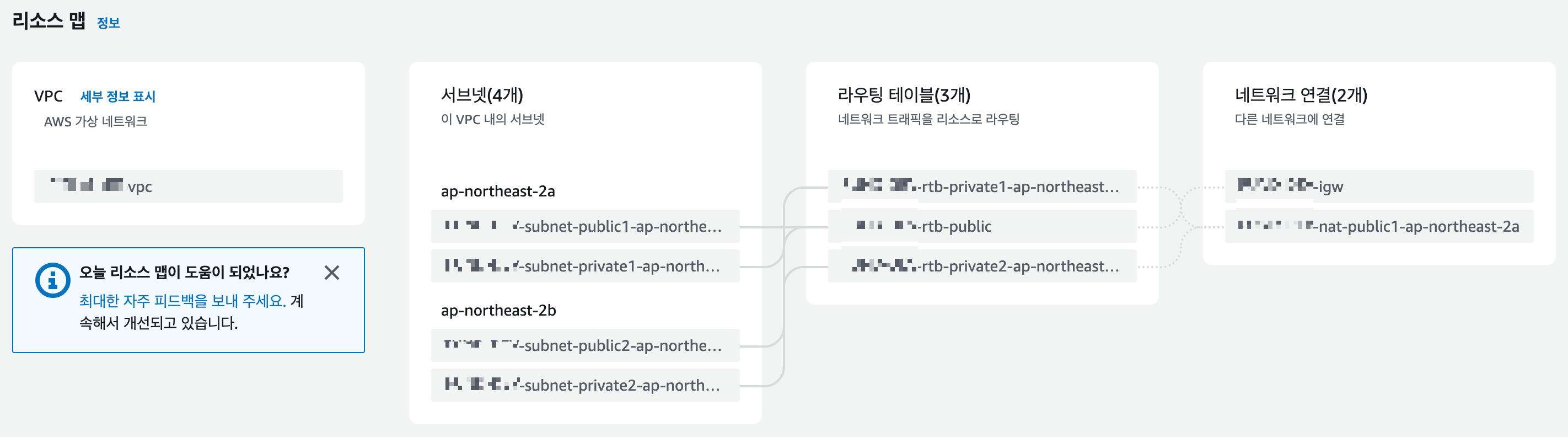 아래는 실제 개발서버로 사용할 VPC를 구성한 사진이다.