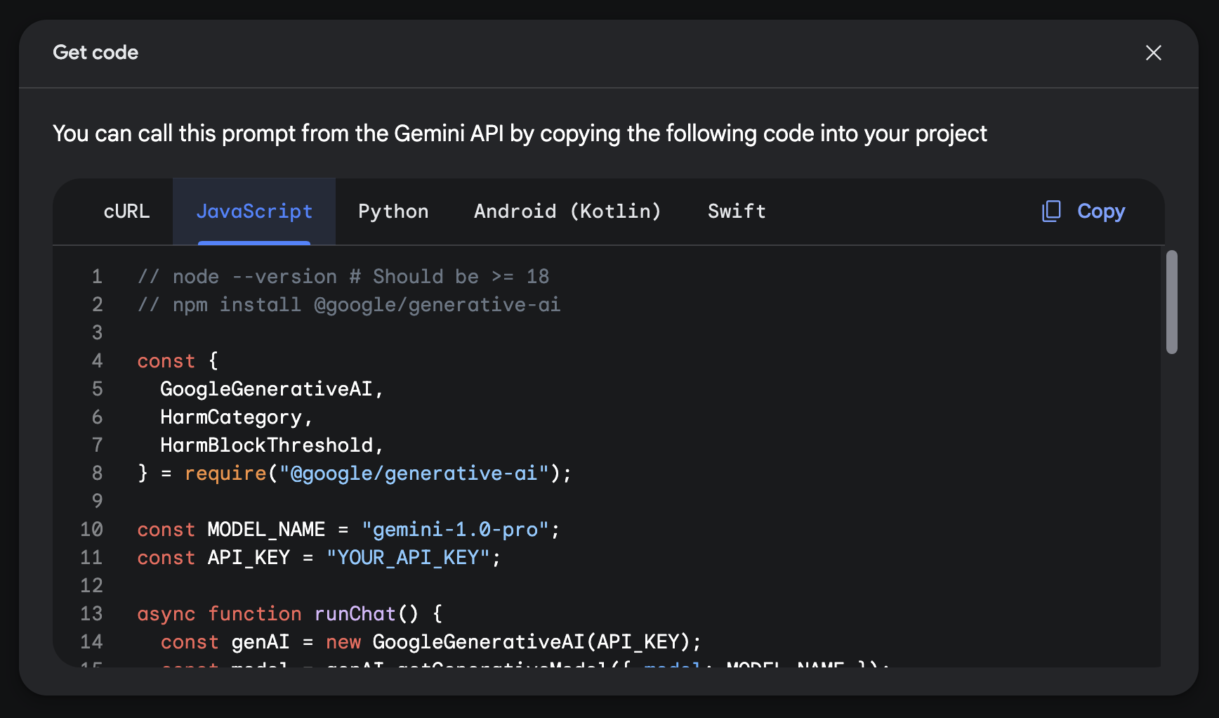const genAI = new GoogleGenerativeAI(geminiApiKey!)