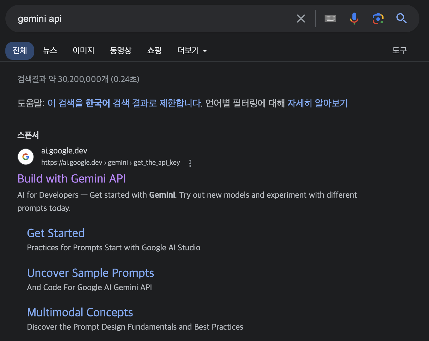사용법은 간단했다. GOOGLE에 gemini api를 검색